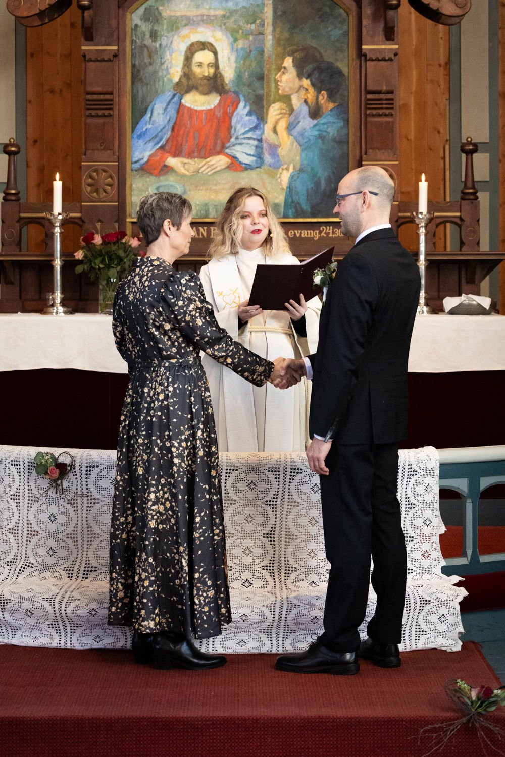 Seremonien da Åse Veiseth og Martin Johnsen ga hverandre sitt ja, var enkel og intim – uten forlovere, men med ansatte i kirken som vitner.