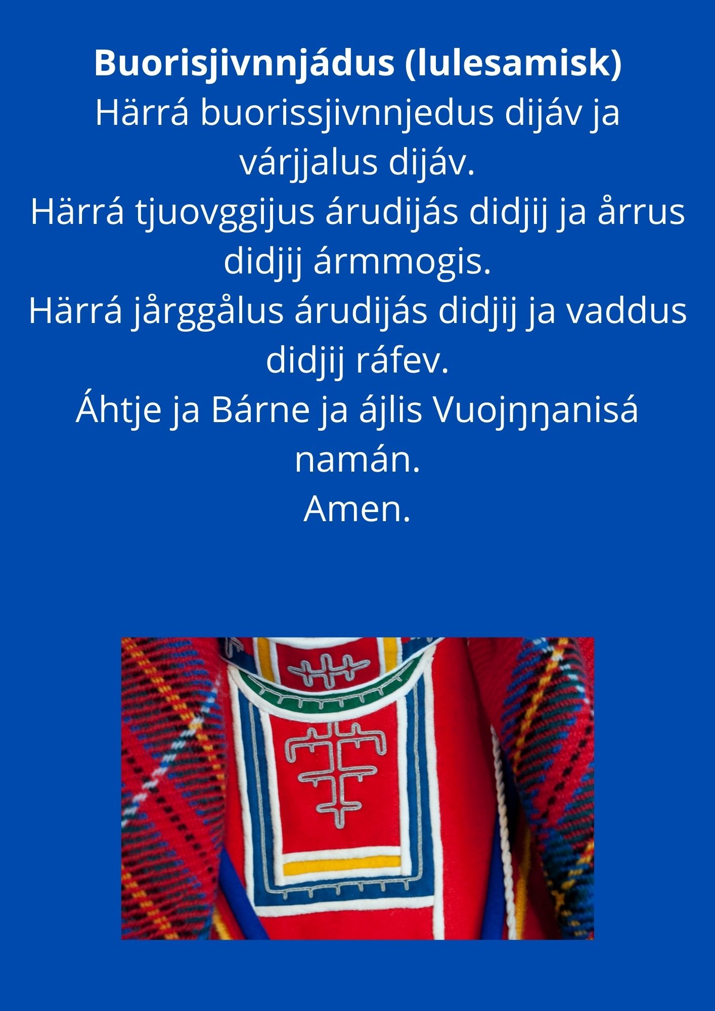 Her finner du velsignelsen oversatt til nordsamisk, lulesamisk, sørsamisk og umesamisk.
