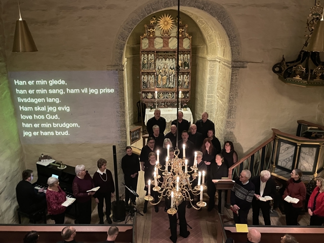 Salmekveld i Balke kirke, avrundet første visitasdag i Østre Toten. Foto: Eystein Elde.