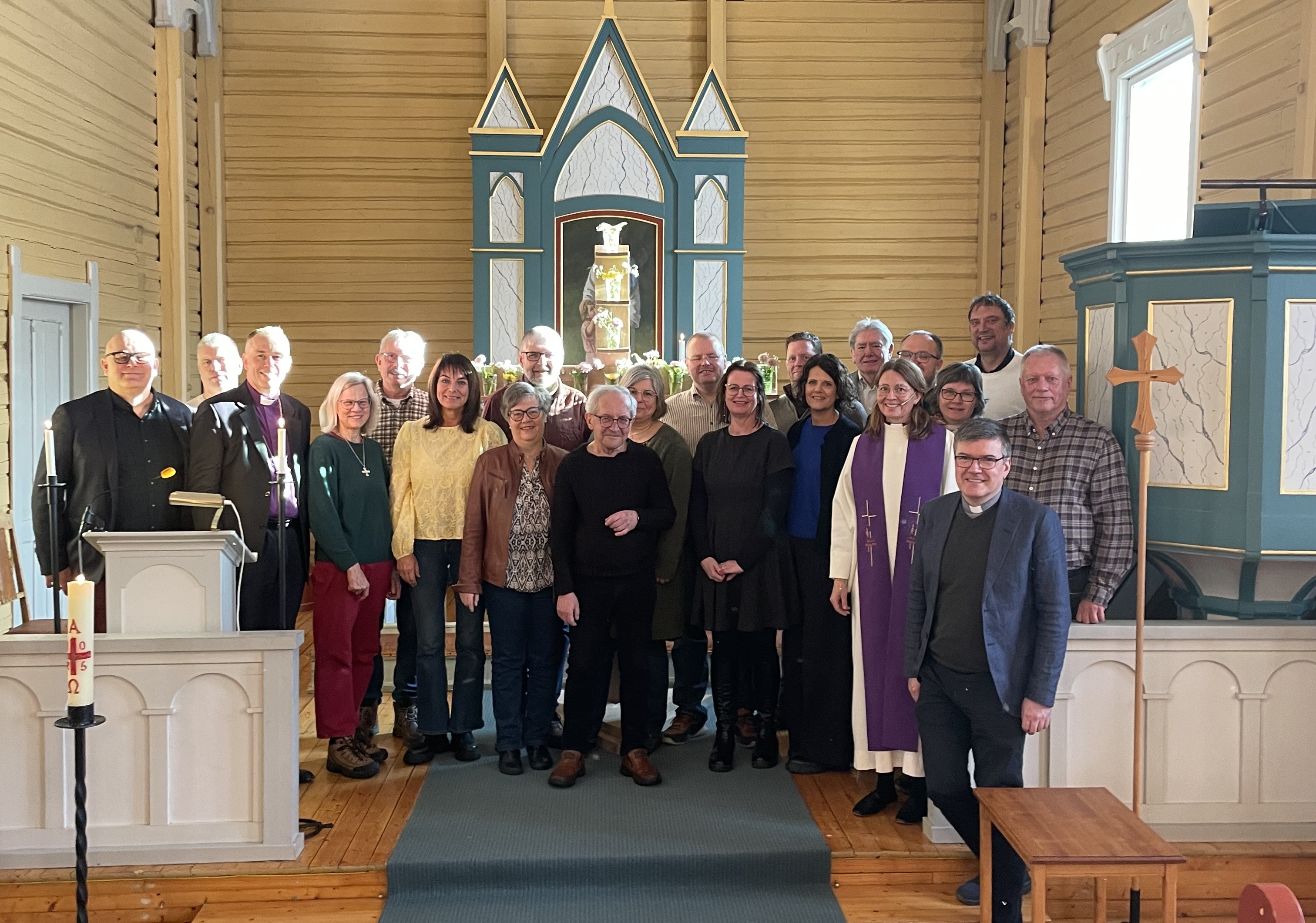 Den kirkelige staben på Østre Toten samlet i Nordlien kirke første dag av visitasen. Foto: Eystein Elde.