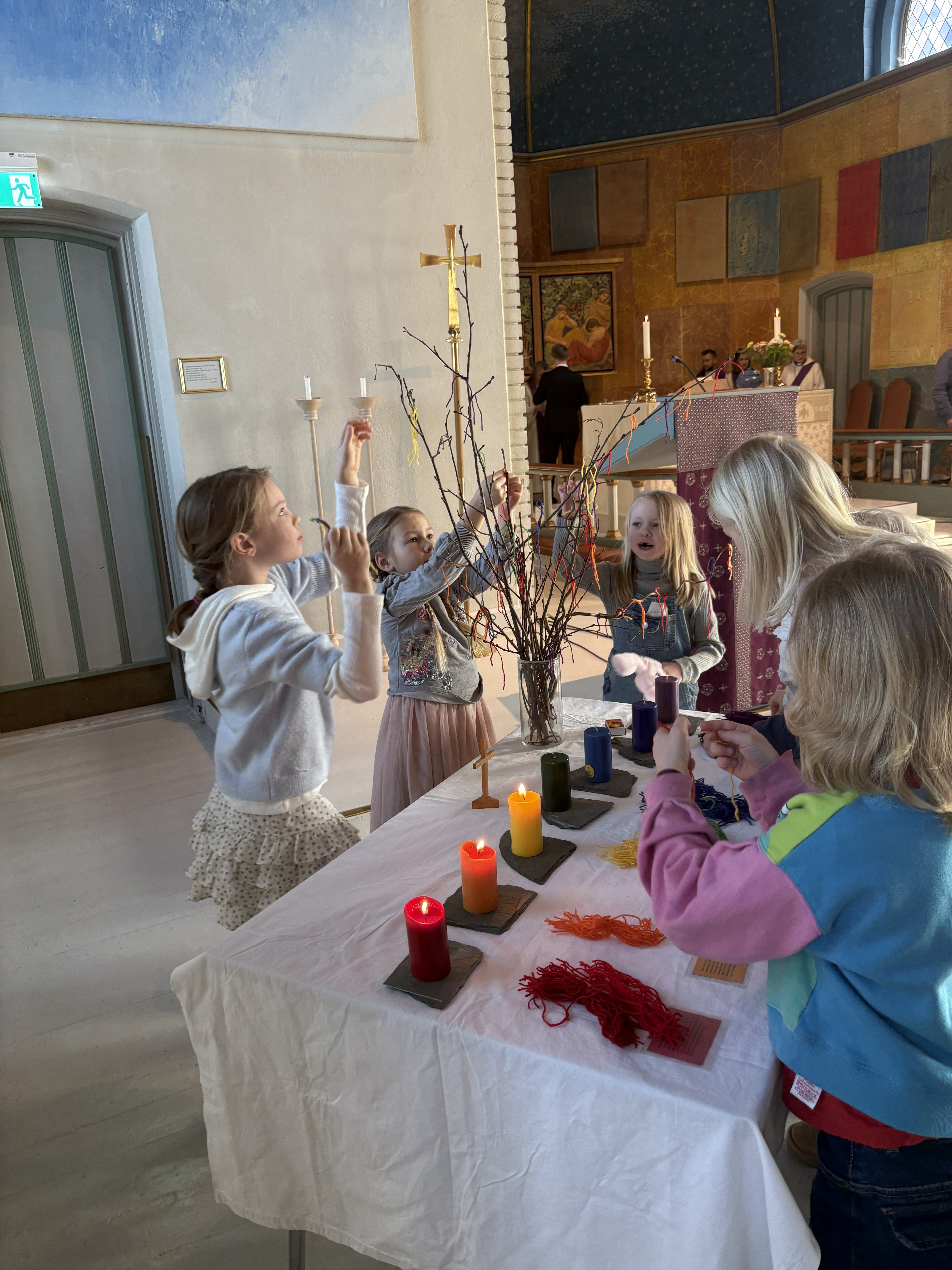 På Lundgaardsløkka barnehage tjuvstartet vi påsken. Gjennom et svært godt pedagogisk opplegg fikk barna ta del i påskens fortellinger, og vi vandret gjennom palmesøndag, skjærtorsdag, langfredag og påskedagen. Dette er et utmerket eksempel på hva samarbeid mellom kirke og barnehage kan føre til.