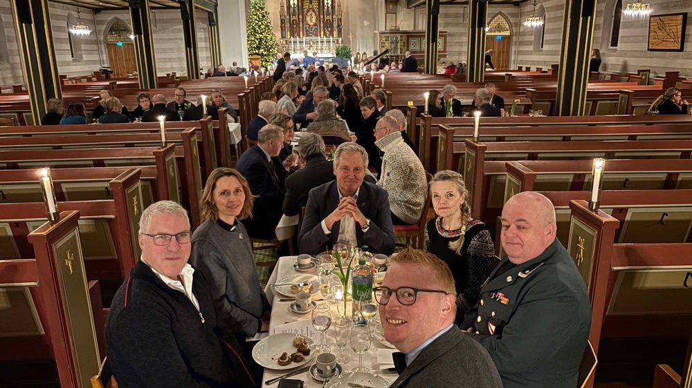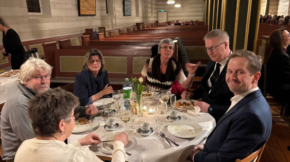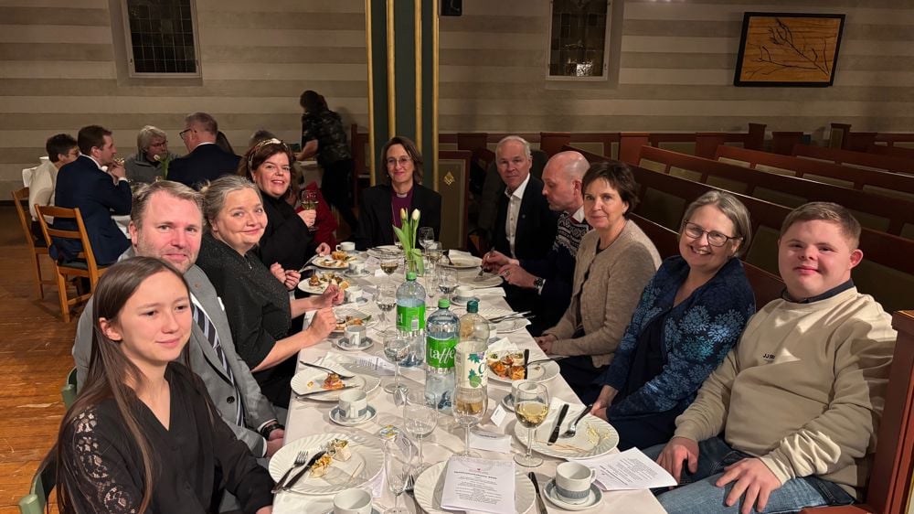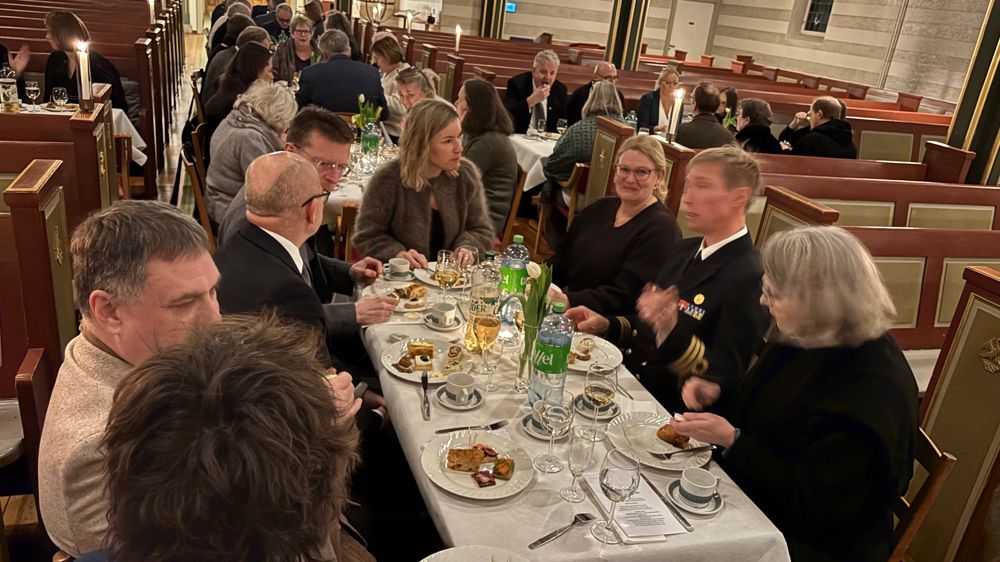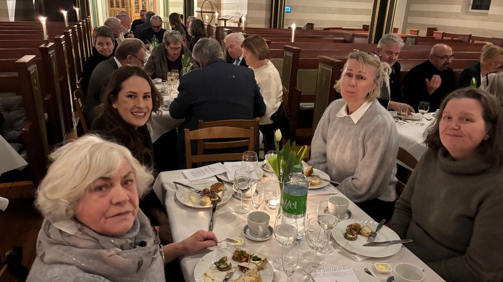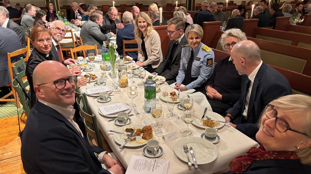 - Jeg er glad i deg! Det runget i Fredrikstad domkirke da Else Kåss Furuseth fikk alle til å si «jeg er glad i deg» til hverandre. Langbordet var dekket til 120 personer og det ble mange gode samtaler om åndelig og eksistensiell beredskap i Fredrikstad domkirke på årets nyttårmottakelse.