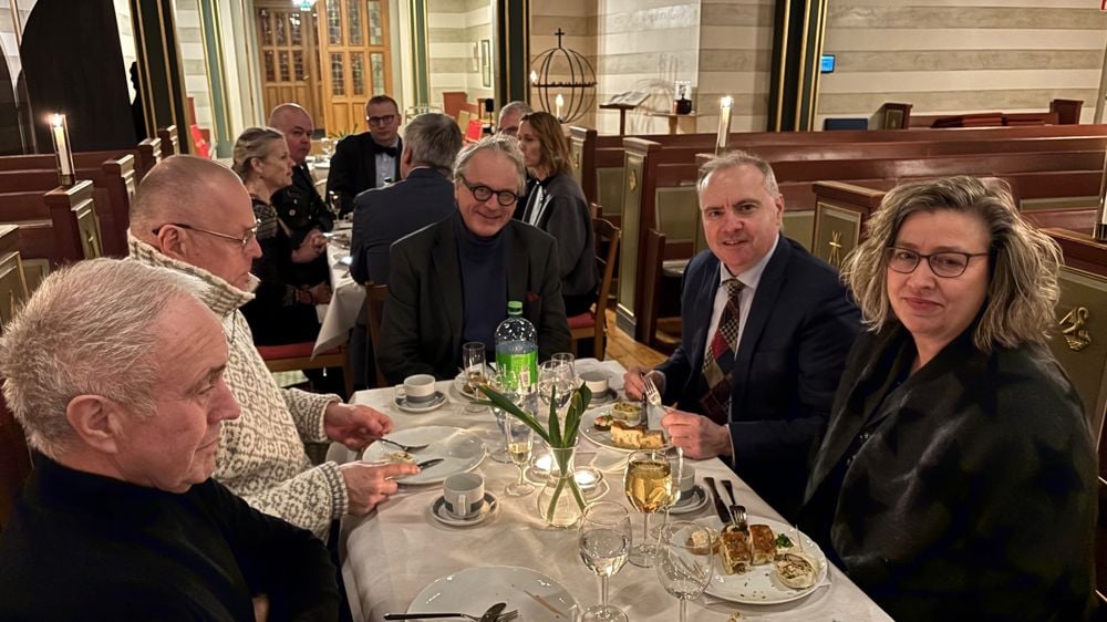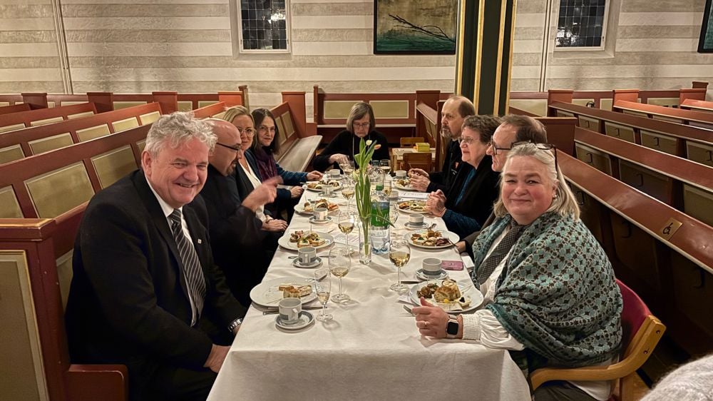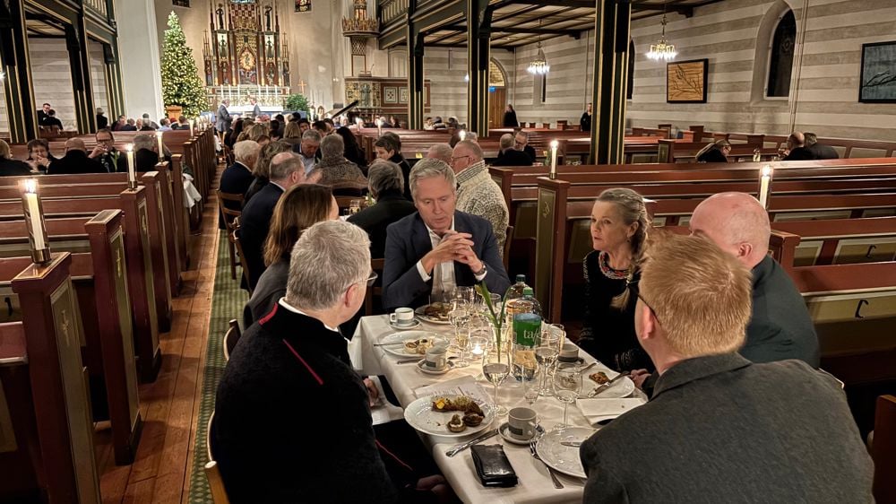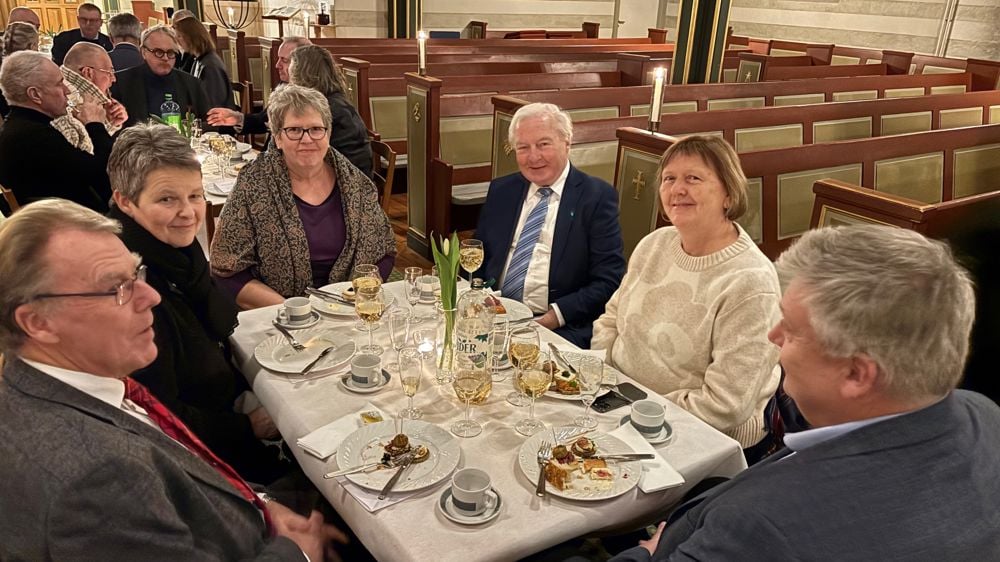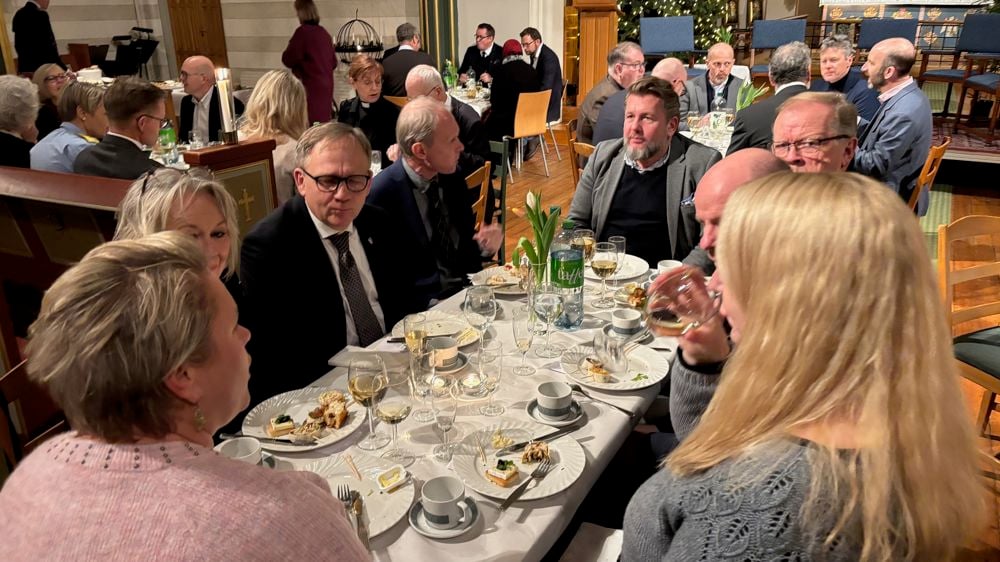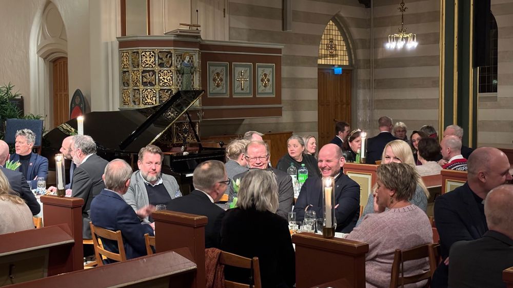 - Jeg er glad i deg! Det runget i Fredrikstad domkirke da Else Kåss Furuseth fikk alle til å si «jeg er glad i deg» til hverandre. Langbordet var dekket til 120 personer og det ble mange gode samtaler om åndelig og eksistensiell beredskap i Fredrikstad domkirke på årets nyttårmottakelse.