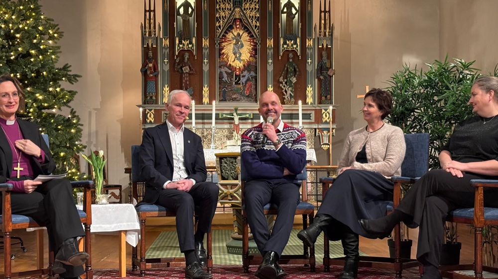 Else Kåss Furuseth og Sondre Myrseth sammen med statsforvalter Jan Tore Sanner, fylkesordfører Sindre Martinsen-Evje, ordfører i Eidsvoll Nina Kristengård og leder av Borg bispedømmeråd Karin-Elin Berg samtalte med Biskop Kari i Borg.Wollert og Elisabeth Krohn-Hansen, Kristian Zacchariassen og Stine Solgård Stene bidro med vakker musikk.