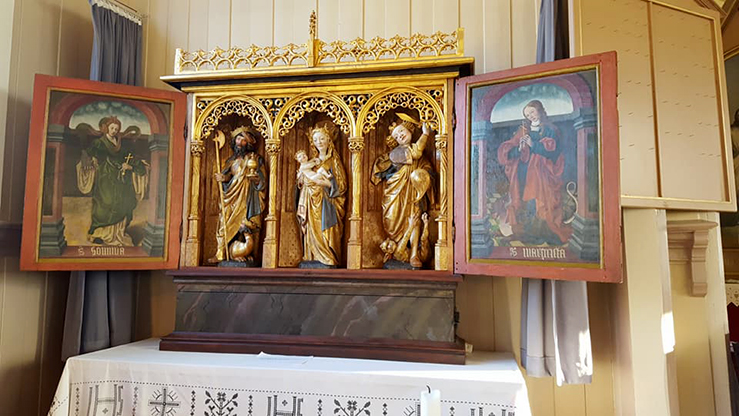 Alterskapet fra 1500-tallet er et spesielt klenodium i Leka kirke. (Foto: Herborg Finnset)