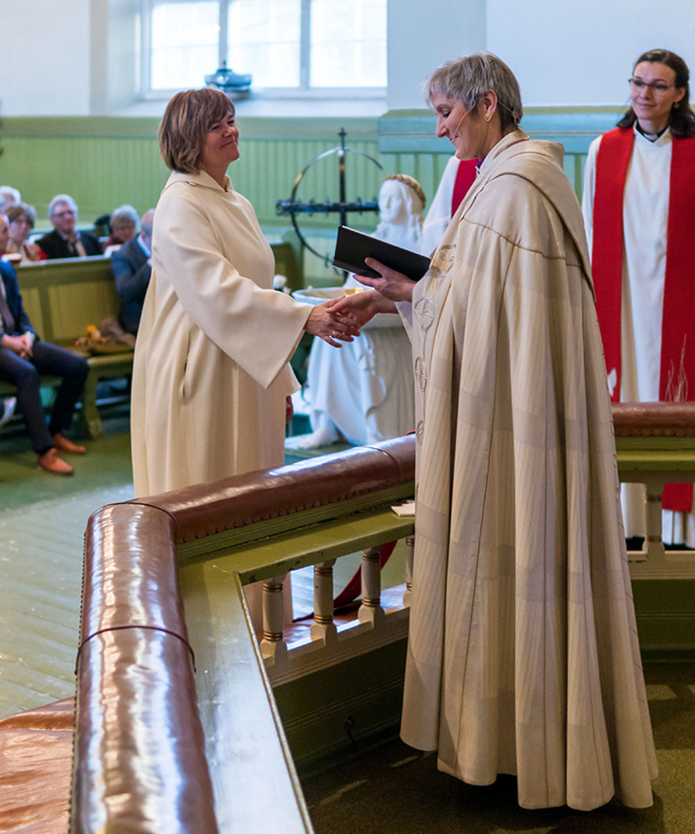 Den nyvigslede diakonen er egentlig fra Jæren, men har i mange år bodd sammen med sin familie på Frosta. I dag er hun diakon for menighetene i Åsen, Levanger og Frosta, og samtidig linjeleder for diakonene i Sør-Innherad prosti.