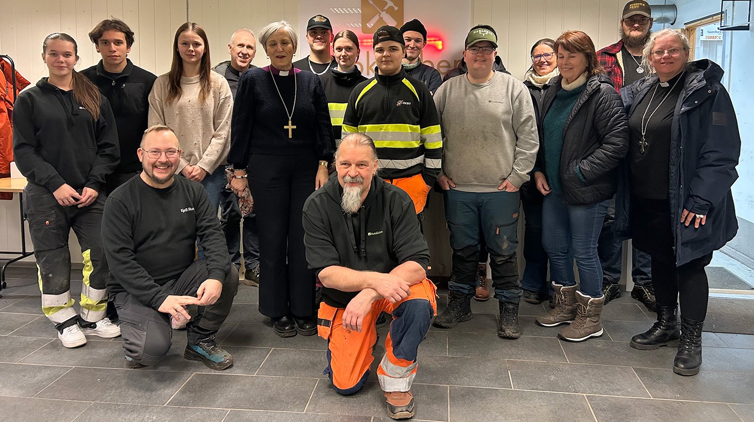 Biskop Herborg sammen med ledere og ungdommer i Malm Autoklubb