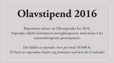 18.3.2015Bispemøtet har nå lyst ut Oalvstipendet for 2016. Søknadsfrist 1.juni