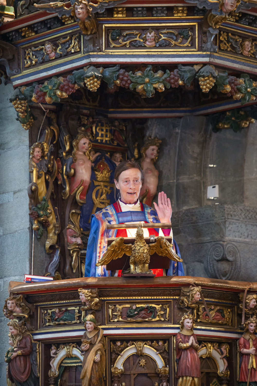 – Kirka forvalter ord med sprengkraft, ord som kan skape glede og håp, ord som kan snu ting opp-ned. Den trangeste døra i dette kirkebygget er bispeinngangen. Det leser jeg som en melding til meg og andre med posisjon eller makt i kirka, at vi ikke skal ta vår plass for gitt, sa biskopen.