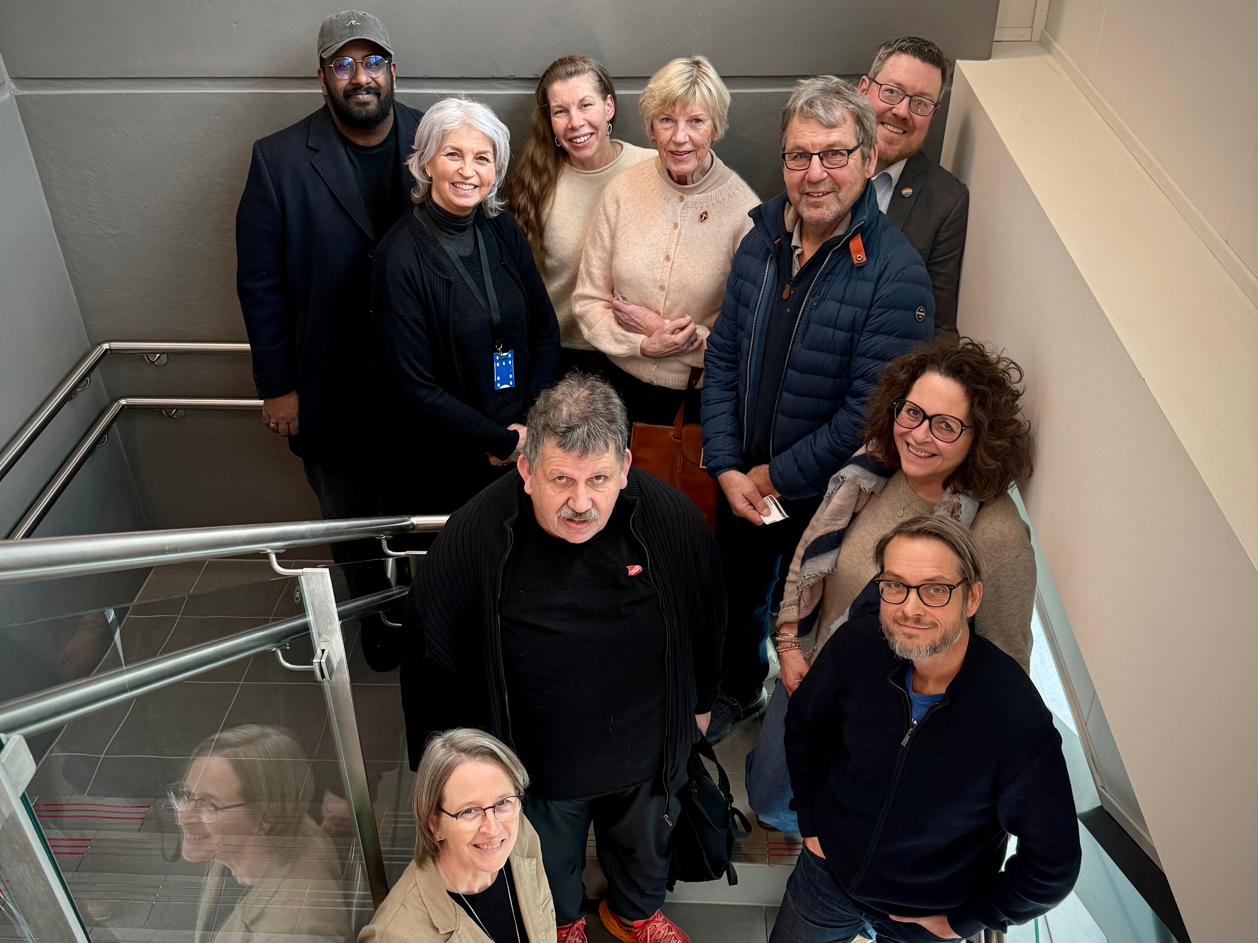 Representanter fra pilegrimsfellesskapene i Tunsberg møttes på bispedømmekontoret i februar 2026. Fra venstre Piriant Totorp Chandran, Mari Braut, Nanna Jørgensen, Marlis Karlsen, Olav Reitan, Harald Hauge, Morten Dahler, Inger Mangrud Bore, Kjell-Richard Landaasen og Anna Runesson.