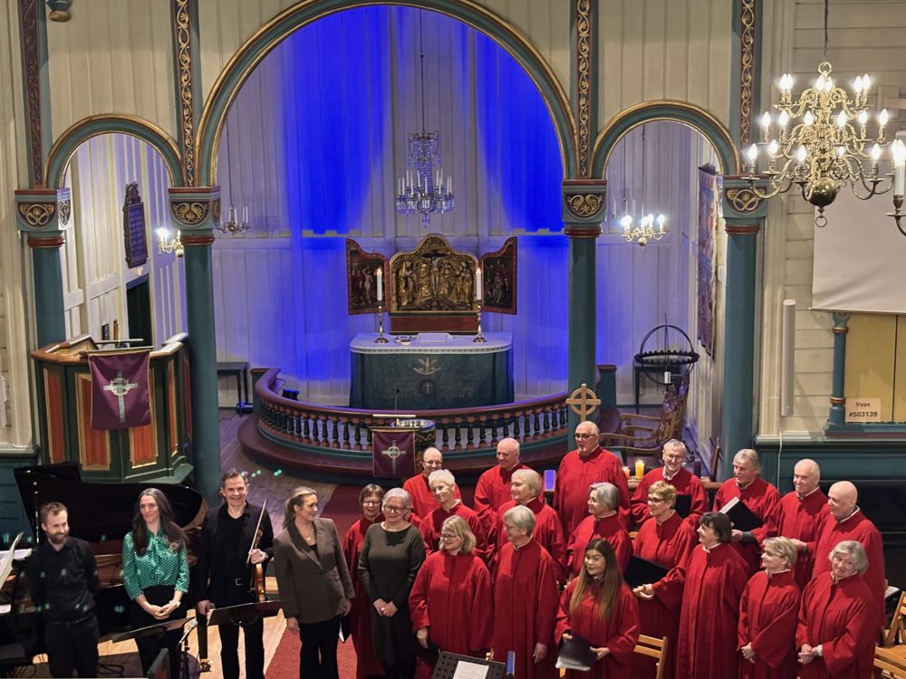 Dagens siste programpost vart ei flott konsertoppleving med mange høgdepunkt. Leiv Arne Nydal, Kirsten Ragnhild Grimstad, Anne Velle Rishaug og Ørsta kyrkjekor tok del saman med kantor Marie Austhreim Riise og organist John Inge Bjøringsøy. Etter konserten stod Ørsta sokneråd for kveldsmat. Kyrkjestova var full, det var god stemning og god drøs.
