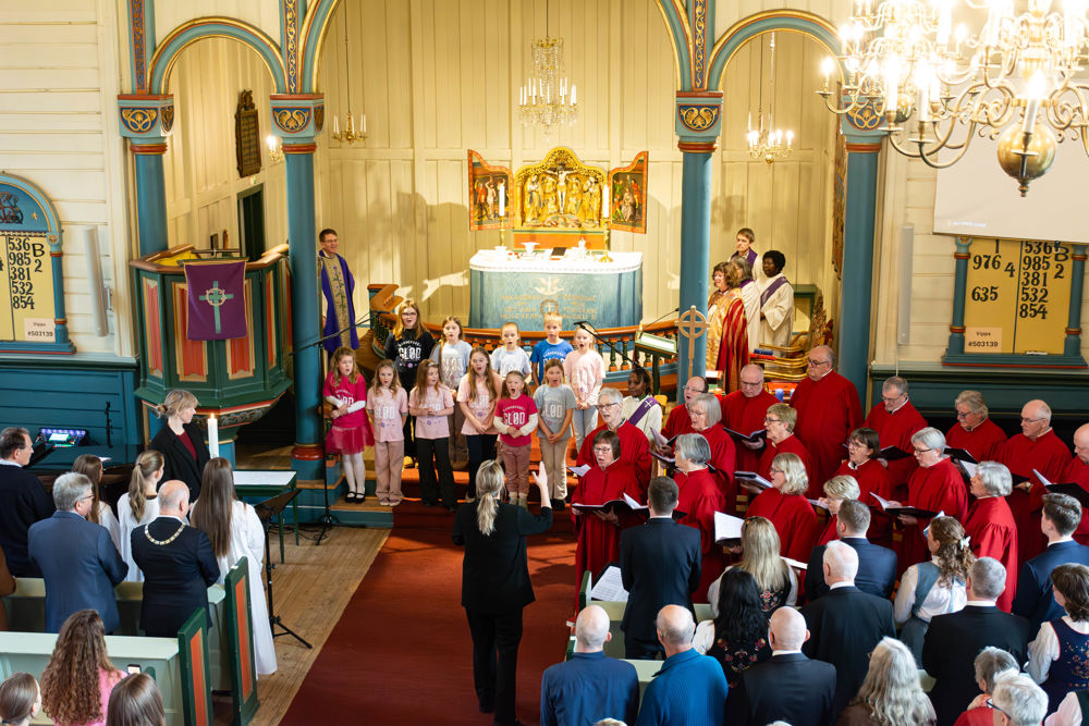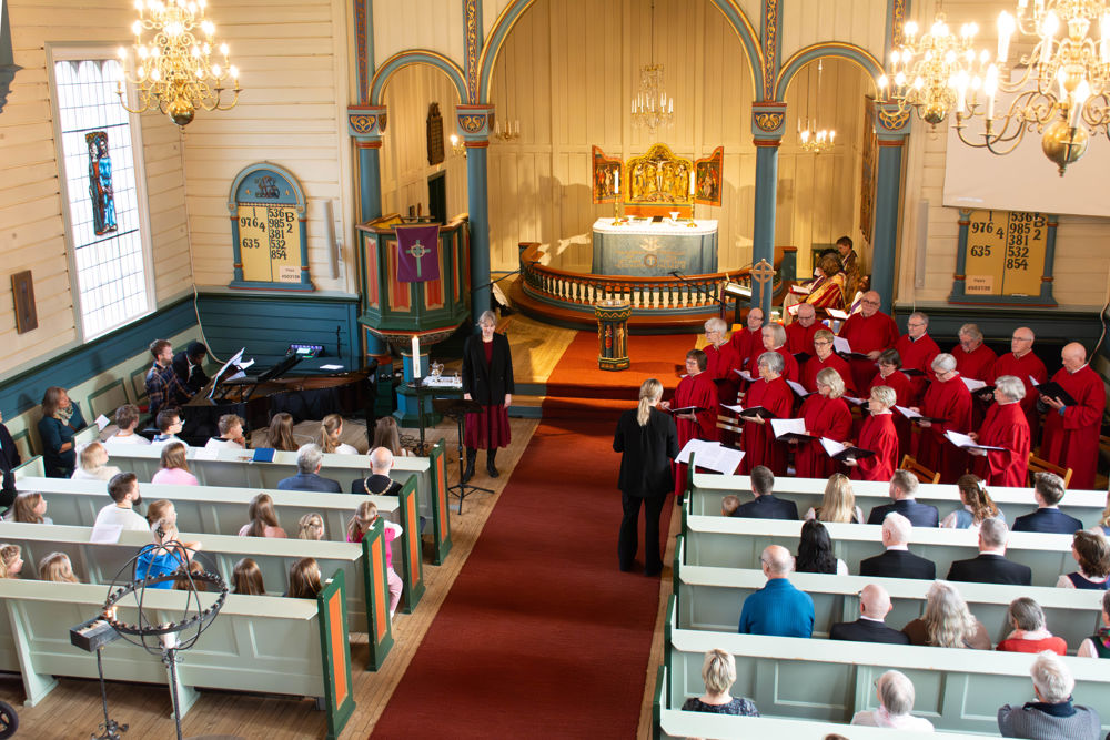 På gudstenesta fekk vi høyre både barnekoret GLØD, Ørsta kyrkjekor, sopran Karen Rosenberg Olsen og fiolinist Leiv Arne Nydal. Biskop Ingeborg Midttømme heldt preika og mange løna og uløna medarbeidarar tok del.