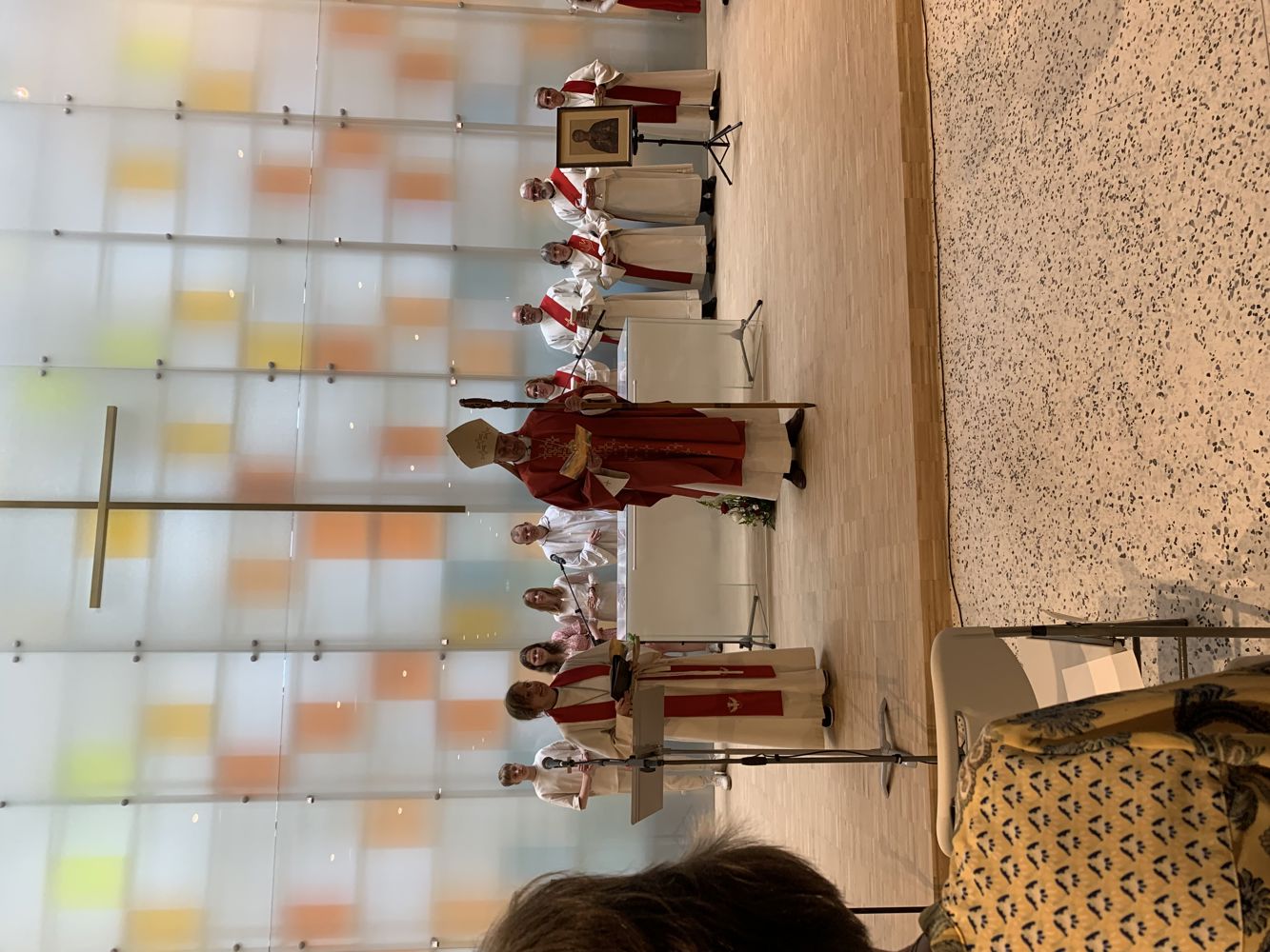 Så kom prosesjonen inn mens kor og menighet sang sammen (alle melodier var kjente, og det var lett å synge med, om enn uttale og forståelse var hjelpeløst).