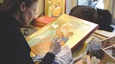 15.1.2019Tre store ikoner, nymalt av Solrunn Nes, overleveres og innvies under gudstjenesten.