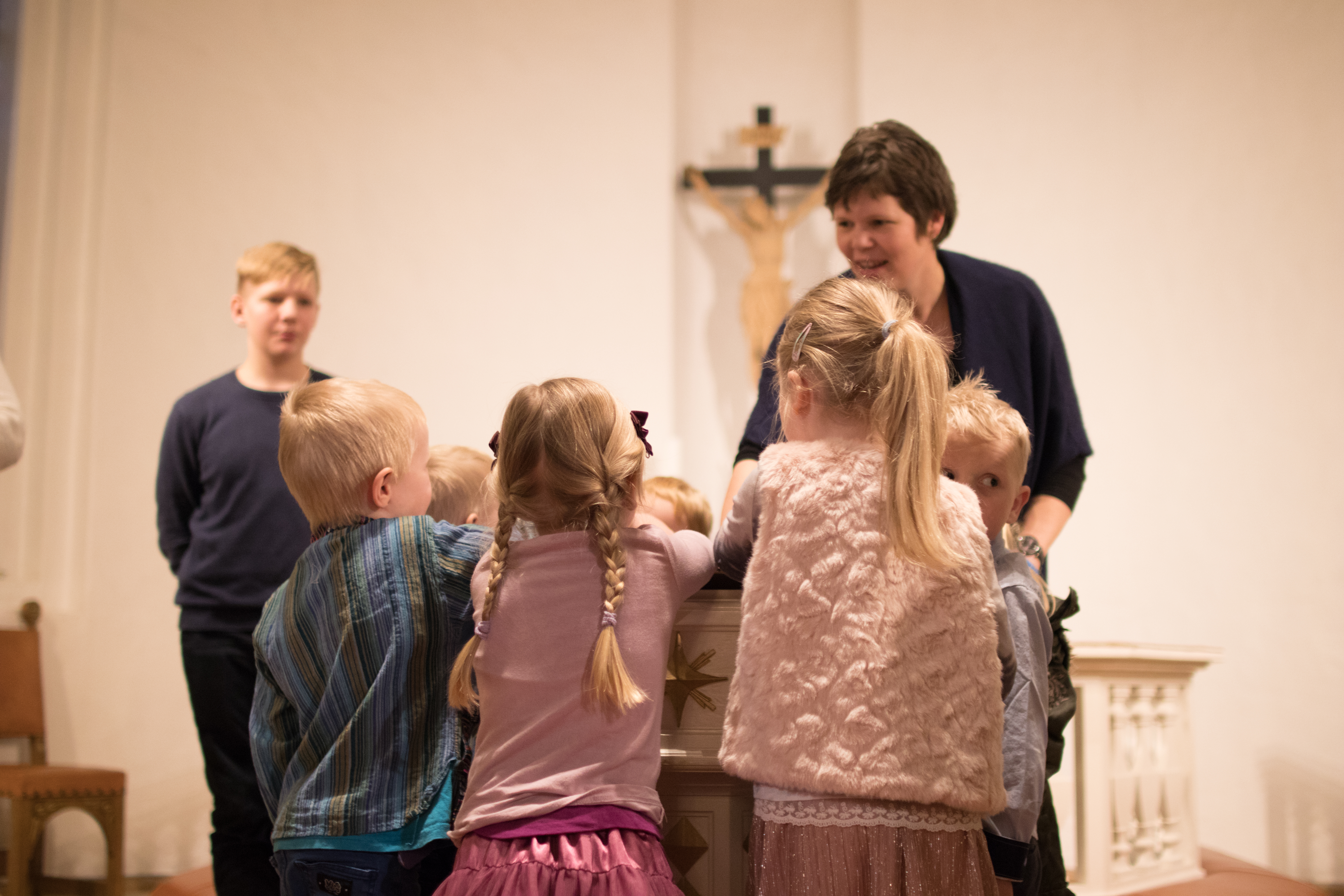3 og 4 år. Bokutdeling. Med samling på forhånd. Undretur i kirken og hobbyverksted. November.