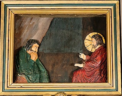 Det sentrale motivet i altertavlen er noe uvanlig: Nikodemus som kommer til Jesus om natten og samtaler med ham. Altertavlen minner oss om at selv for de mest utstøtte og skamfulle går det an å komme til Jesus, om det så er i hemmelighet, om natten, sette seg rolig ned ved hans føtter og ta imot hans nåde.