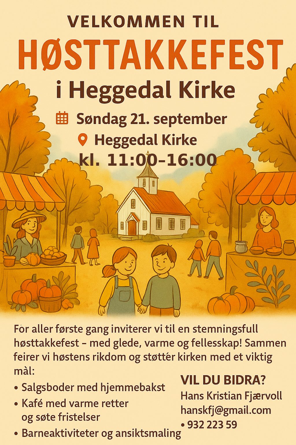 Velkommen til Høsttakkefest i Heggedal kirke, søndag 21. september kl. 11.00.