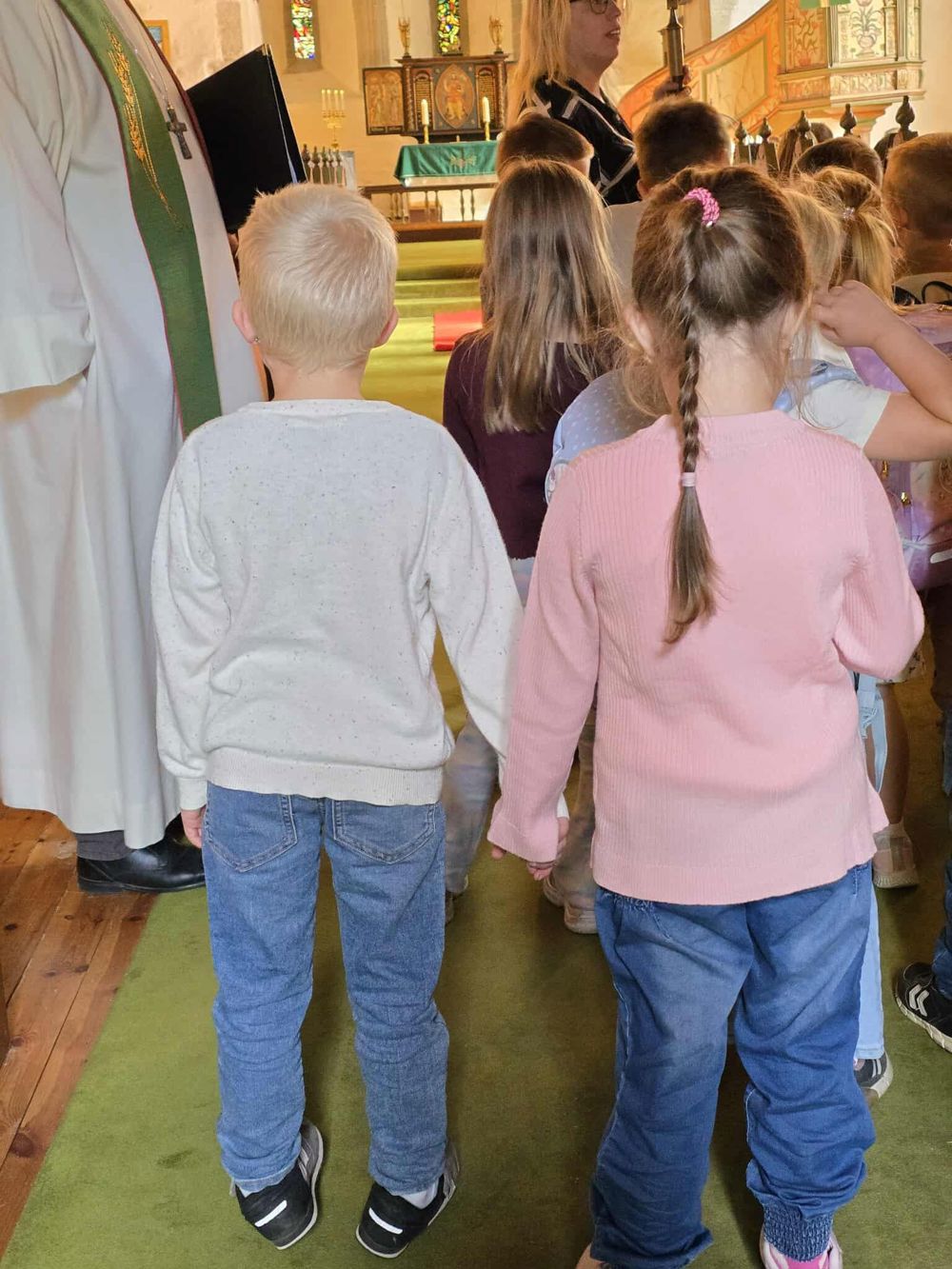 Bilde frå skulestartsgudstenesta i Vangen kyrkje ved prost Kjell Olav Høstaker Nordheim. Organist Freek Ypma spelte flott musikk. Før gudstenesta var det 6-årssamling og etter gudstenesta var det kyrkjekaffi.