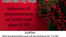 Julafta kl. 15.00 - utegudsteneste 1.juledag kl. 12.00 - høgtidsgudsteneste (max50)