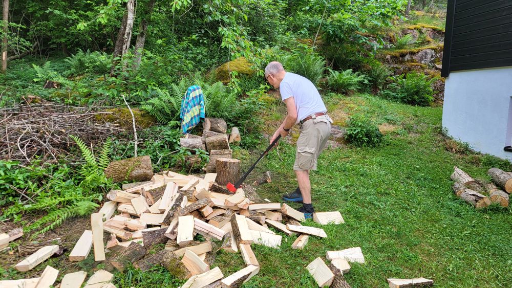 Våronna er gjort i hagen. Vi har sådd, plantet og ryddet. Nå er det ved-arbeid og vanning som gjelder.