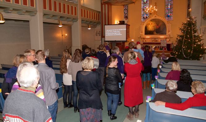 Hit kommer småbarnsfamilier til gudstjenester som er spesielt tilrettelagt for barn. I gudstjenesten samles vi til lesning av Bibelen, bønn, nattverd, dåp, sang og forkynnelse. Etter gudstjenesten er det som regel kirkekaffe i menighetssalen som ligger i tilknytning til kirken. Noen ganger i året flyttes gudstjenesten til andre steder. Dette opplyser vi om i kalenderen og på facebooksidene våre. Følg også med i menighetsbladet.