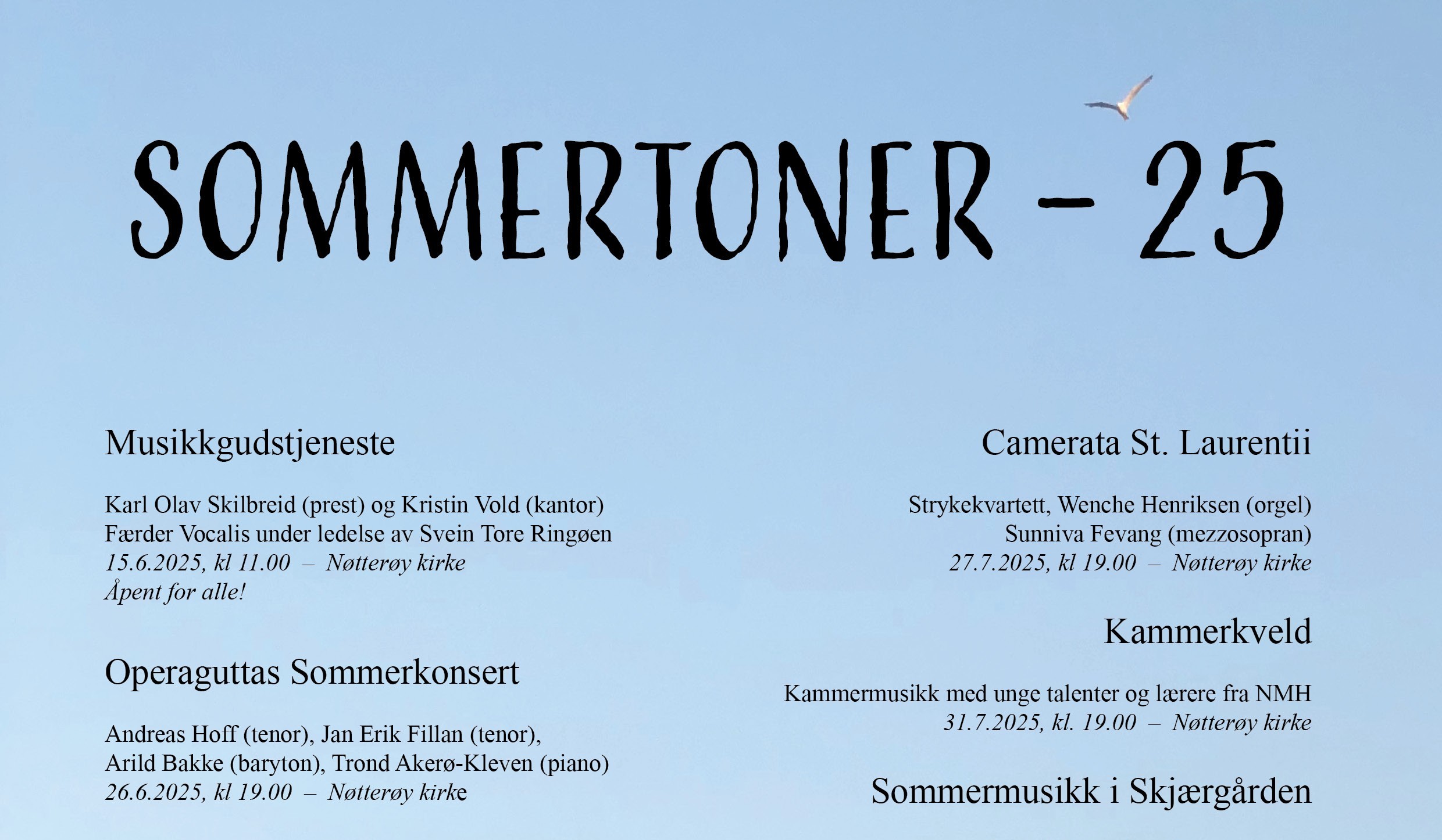 27.6.2023I sommer er det mye musikk i kirkene i Færder - se program i kalenderen på våre nettsider!