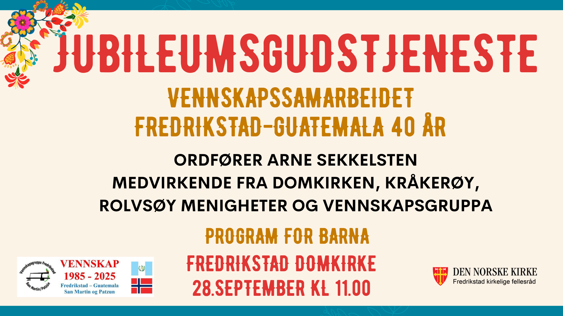 28.september: Jubileumsgudstjeneste Fredrikstad-Guatemala 40 år