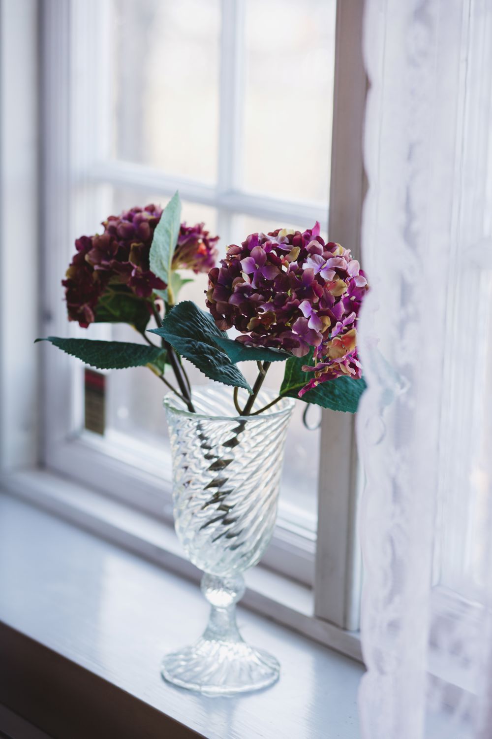 Vaser finnes til alle bord og litt til, pluss lysestaker. Servietter og duker må medbringes av leier.