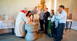I dåpen vert me ein del av kyrkja, ein fellesskap som strekk seg over heile verda - og gjennom alle tider. Me gjev ein lovnad til Gud om å læra barnet opp i den kristne trua, og til gjengjeld lovar Gud å halda si hand over den vesle, og verna barnet gjennom heile livet.