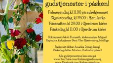 30.3.2023Velkommen til gudstjenester i påsken! Kirkekontoret er stengt, og vi er tilbake tirsdag 11. april.