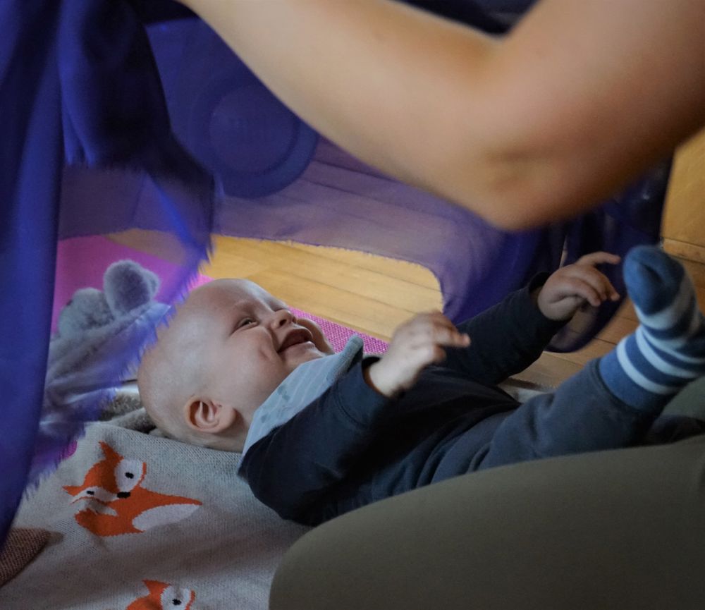 Hver tirsdag møtes foreldre sammen med deres babyer i kirkerommet på Engehaugen. Her lærer vi rim og regler og synger sammen med barna. Det ledes av Hanne Moesgaard Skjesol som er prest, men arrangementet er livsynsåpent.