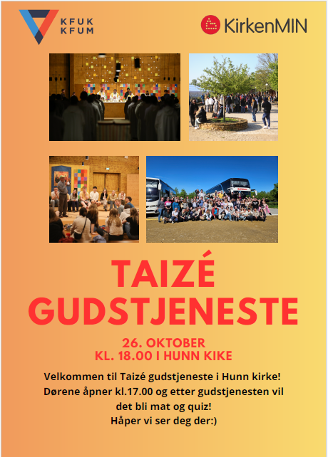 Velkommen til Taizégudstjeneste i Hunn kirke! Dørene åpner kl 17.00 og etter gudstjenesten blir det mat og quiz!