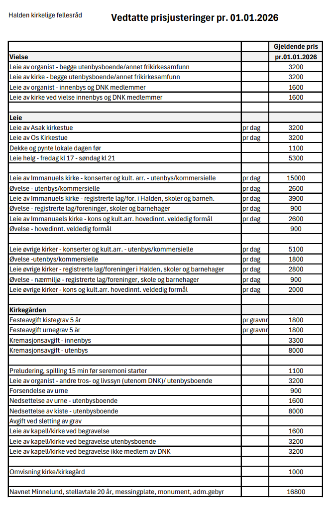 Prisliste 2026