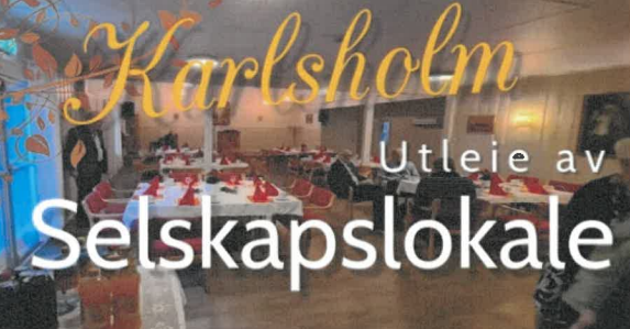 Karlsholm leies ut til diverse arrangementer så som dåpsselskap, konfirmasjon, minnesamvær, foreningsmøter/middager, konferanser og foredrag. Lokalitetene inkluderer en stor og en liten sal, kjøkken, toalett og stedet er tilpasset funksjonshemmede.
