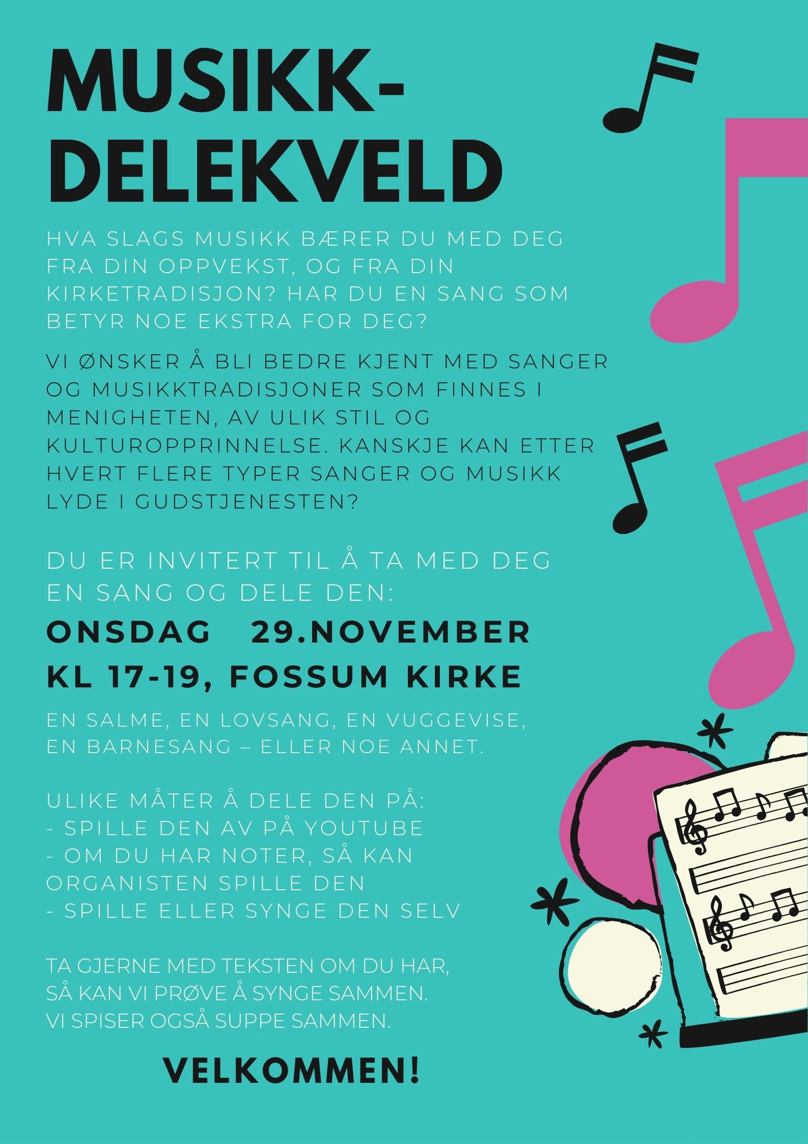 22.11.2023Velkommen til musikk-delekveld onsdag 29.nov. i Fossum kirke kl.17-19.