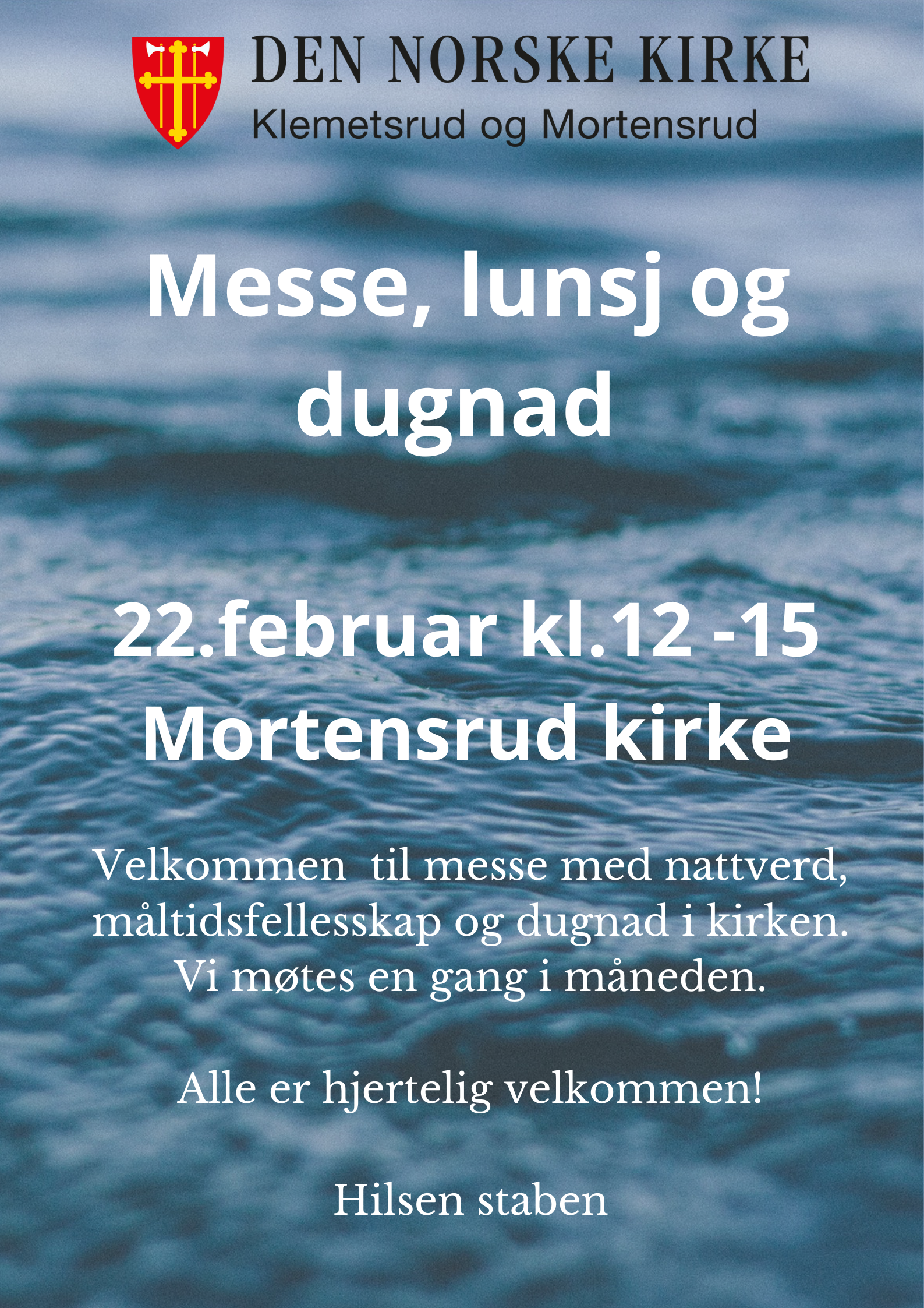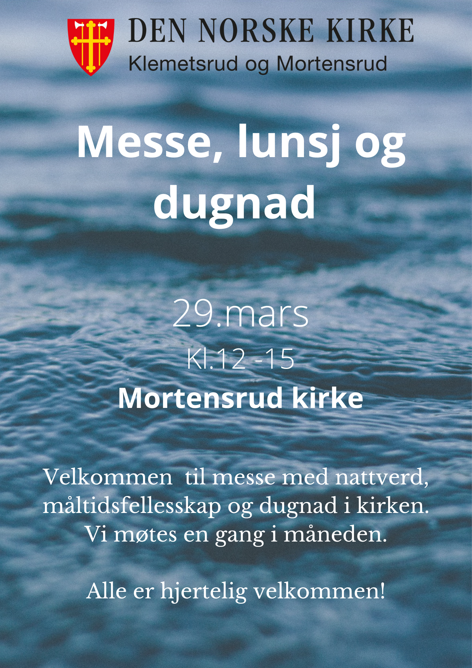 27.3.2023Velkommen til månedens messe, lunsj og dugnad i Mortensrud kirke!