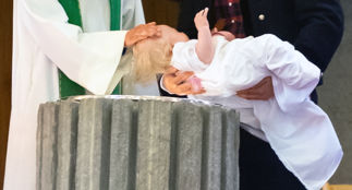 Det er dåp. Et lite barn blir båret inn i kirkerommet, kanskje for første gang. Presten gjør korsets tegn til barnet og øser vann over hodet på den lille. Kanskje han eller hun skriker, kanskje ikke. Foreldre og faddere står rundt. I Den norske kirke blir de fleste døpt før de er seks måneder gamle, men ganske mange blir også døpt før de skal konfirmeres.