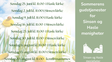 Sommerens gudstjenester for Sinsen og Hasle menigheter.