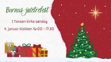 Søndag 4. januar klokken 16:00-17:30 inviterer vi til barnas juletrefest i Tonsen kirke!