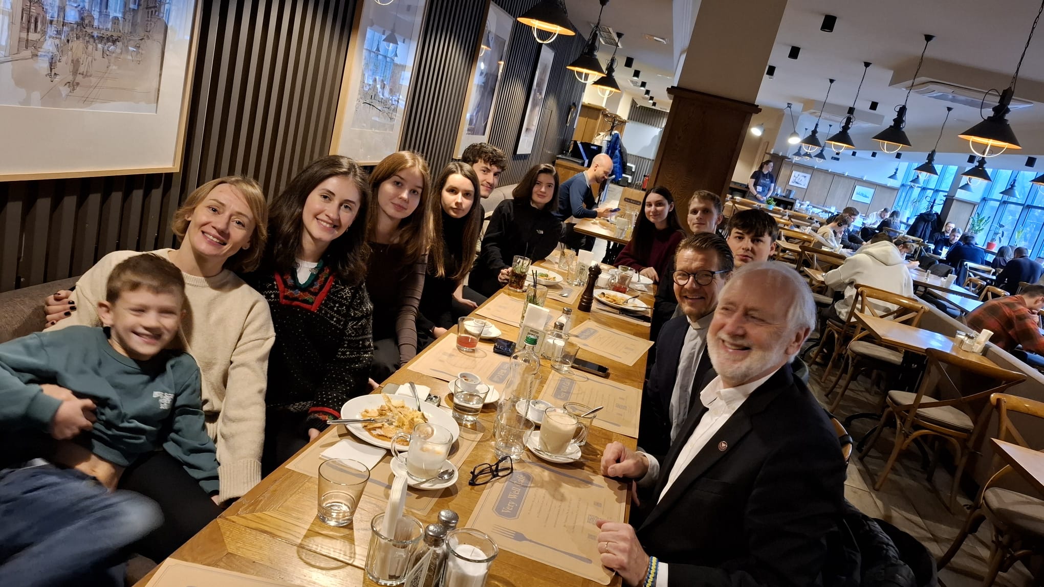 Andrey Raychynets, prest i den Evangeliske kirken, var sammen med president Zelinsky få timer før han traff oss lørdag 23.11 og fortalte om en sliten og tynget president, både han og kona var sterkt preget av alvoret landet er i. Folk er slitne, soldatene ved fronten er slitne, ektefeller og kjærester hjemme er slitne og  de vet ikke om mennene deres overlever enda en natt.  Og barna er slitne for de får ikke sove eller gå på skole pga stadige drone-  og missilangrep mot boligblokker og infrastruktur.  Men ukrainerne gir ikke opp håpet og ofrer utrolig mye for fortsatt å ha et land i frihet.