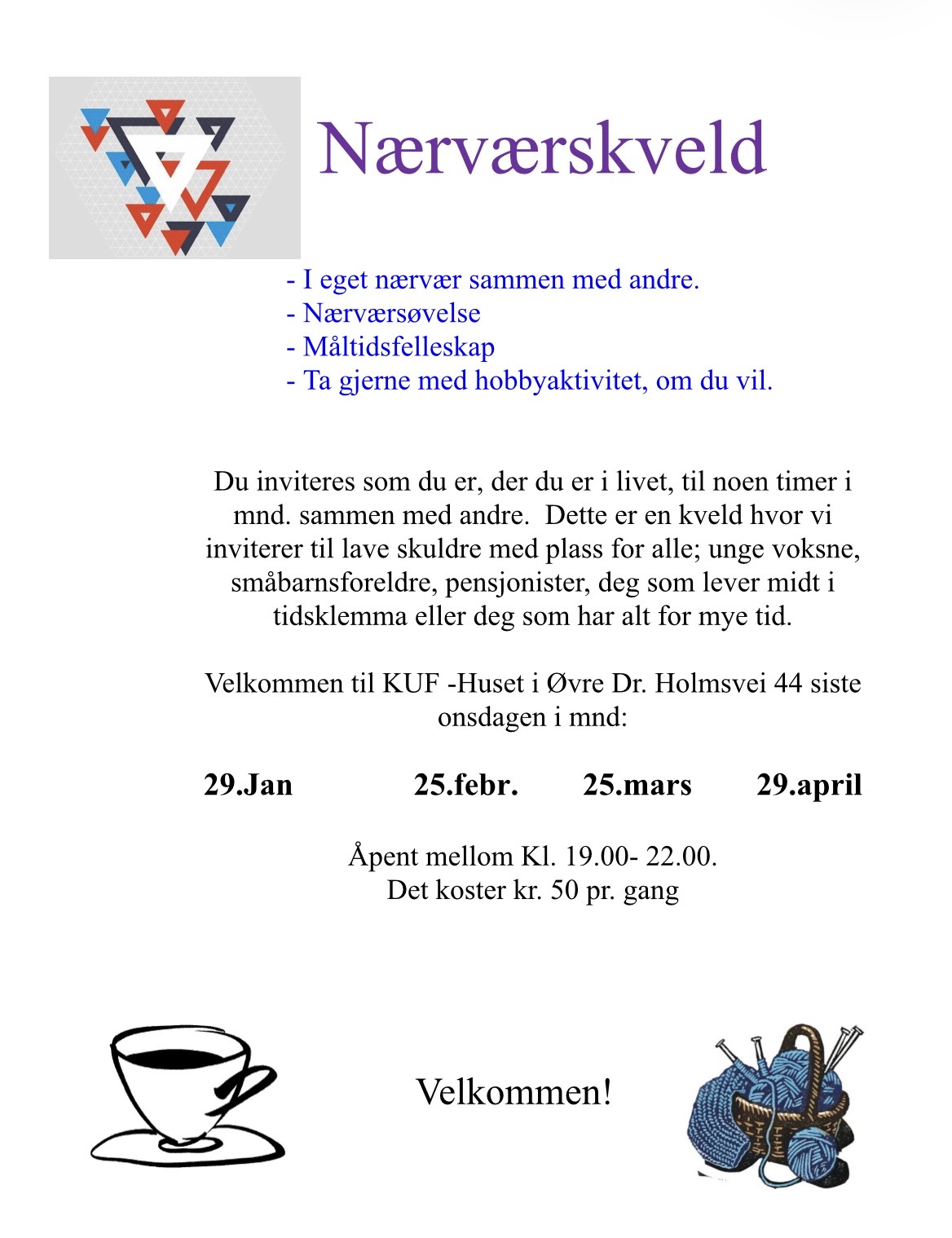 Hjertelig velkommen til Nærværskveld på KUF-huset.