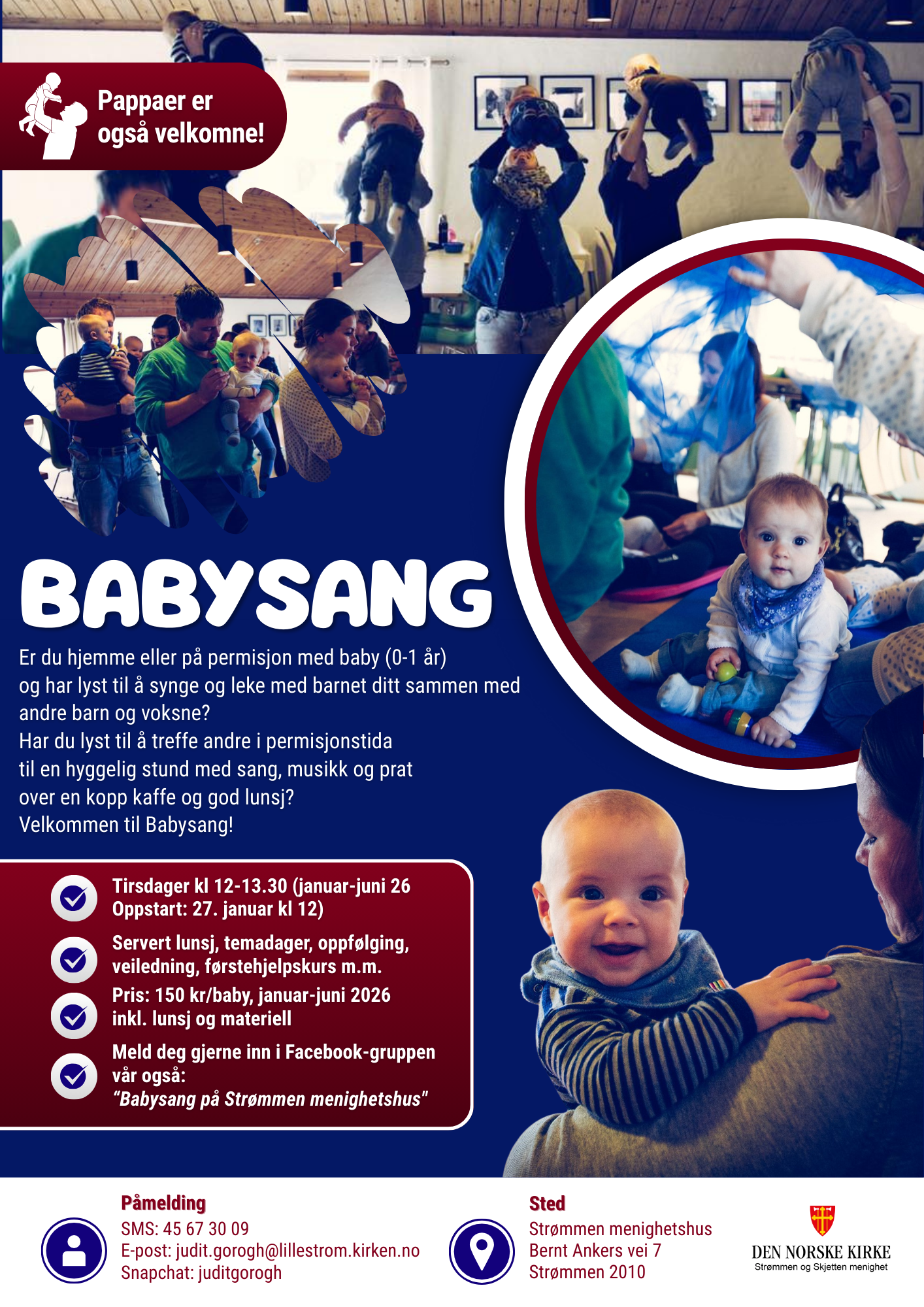 vår også: “Babysang på Strømmen menighetshus" - Pris: 150 kr/baby, januar-juni 2026