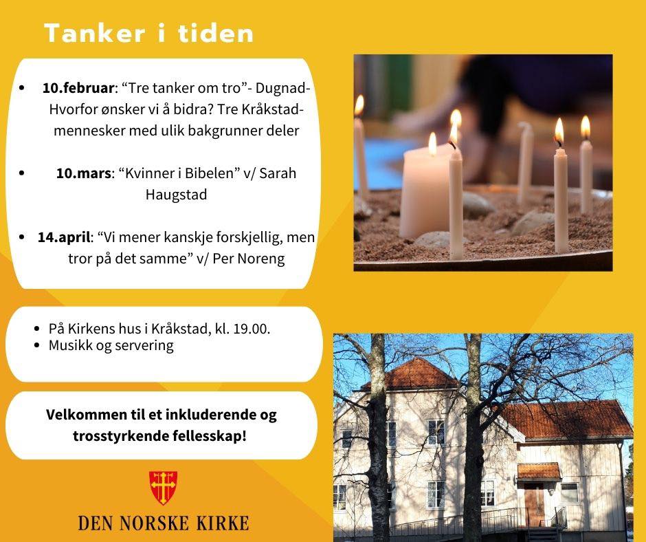 Bli med på foredrag og kveldsmat på kirkens hus noen tirsdager kl. 19-21.