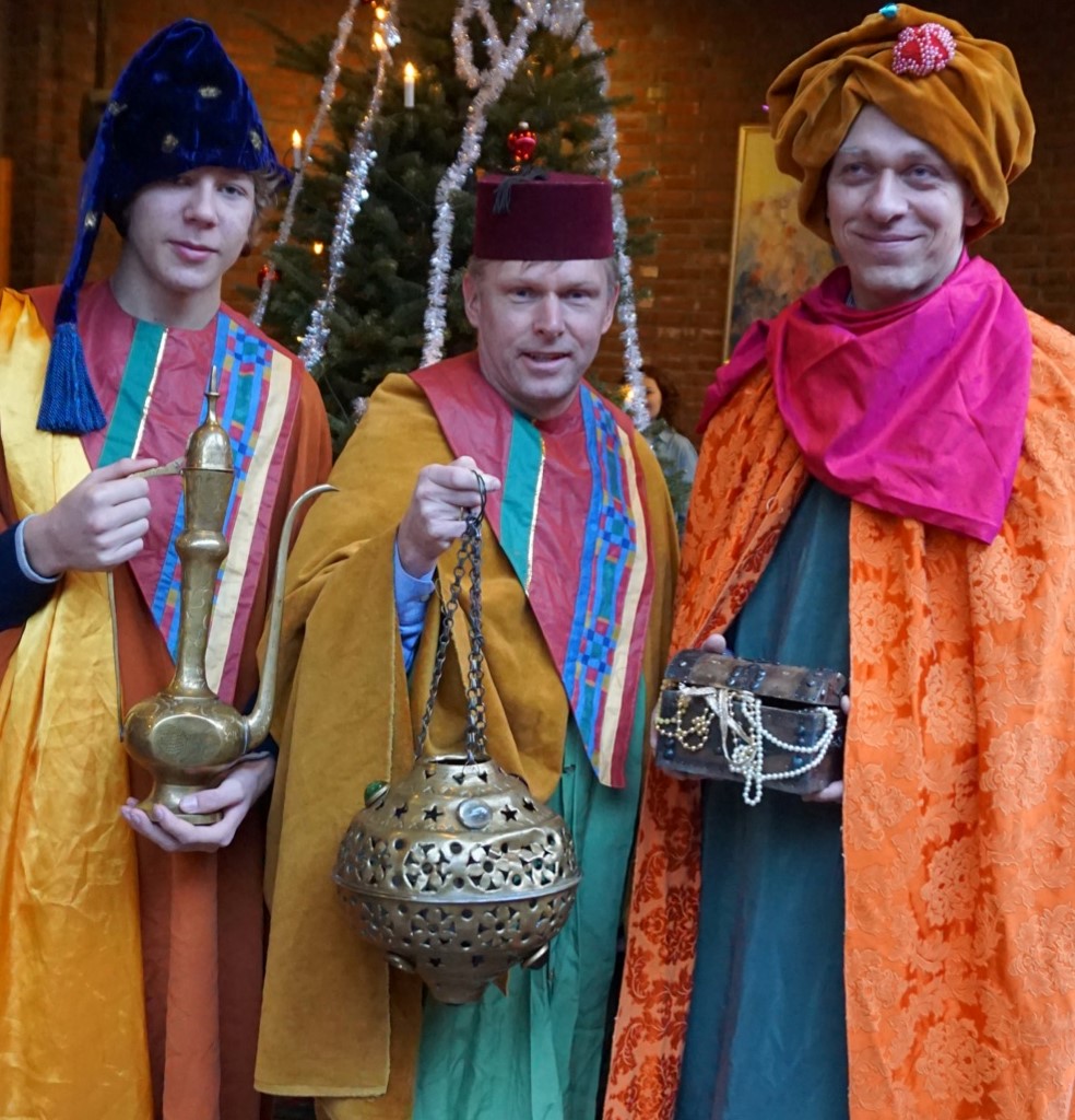 Vi pleier å ha denne utdelingen på en familiegudstjeneste, og da er det ofte litt ekstra morro for barna også etter gudstjenesten. Under ser du for eksempel vismennene som kom med gave til alle barna.