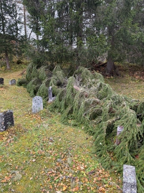Vi har mannskap ute som rydder opp, men dette vil ta noe tid. Om det avdekkes skader på gravminner, vil berørte festere bli kontaktet.