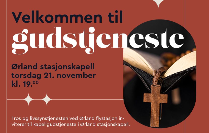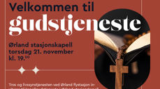 Velkommen til gudstjeneste Ørland stasjonskapell torsdag 21. november kl. 19.00