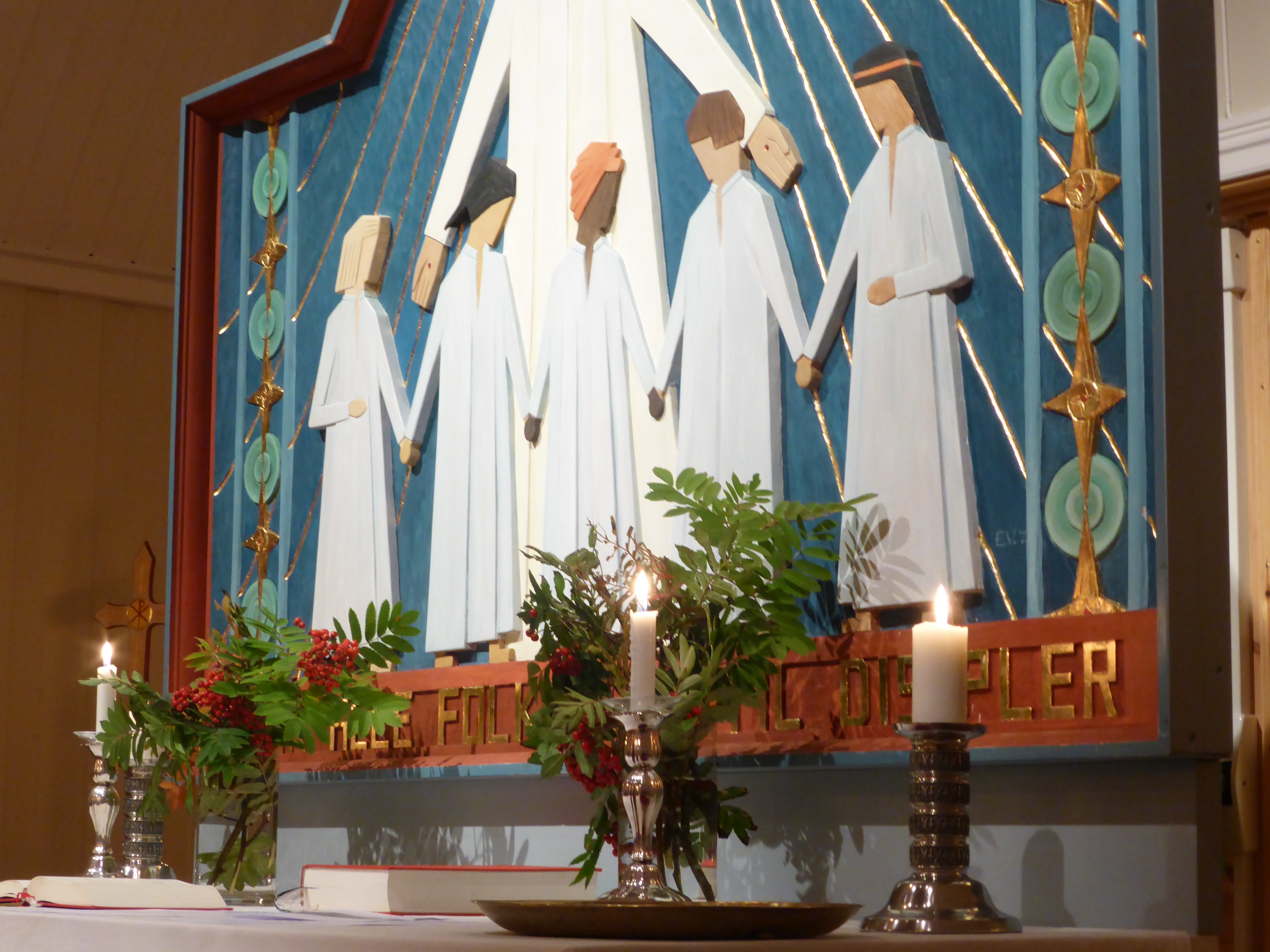Dette var samtidig høsttakkefest, så konfirmantene hadde med seg hver sin korg med grønnsaker og lignende, som ble båret fram til alterringen, og på kirkekaffen solgt på amerikansk auksjon.
