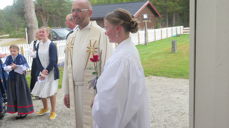 15.9.2020Festgudstjeneste for konfirmanten i Tufsingdalen; Inger Siksjø. Ny duk på alteret var det også.