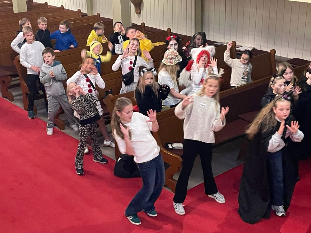 T0 HalloTweens er nemleg ein kveld som både er ein T-dag for tiåringane, og ein «tweenskveld» for alle. Vi hadde også med oss ein fin gjeng med dyktige leiarar i alle aldrar, alt frå konfirmantar til pensjonistar.