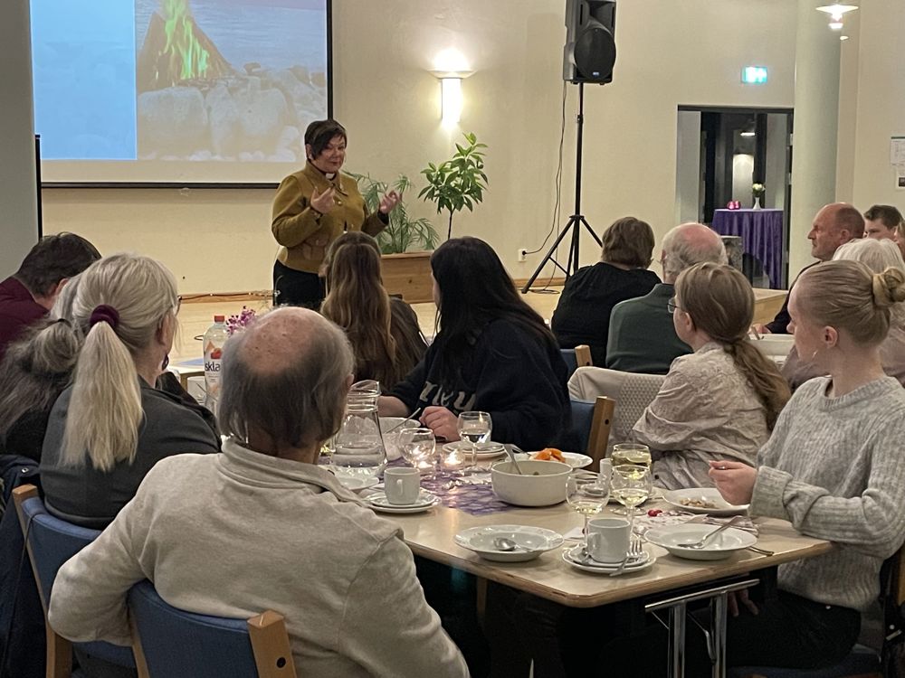 Avslutningsvis samla alle seg i kyrkjerommet til ein felles, stille og vakker avslutning med oppbygging og utsending. Det blei ein fin påminning om kvifor vi gjer det vi gjer. «Vi elskar fordi han elska oss først» (1.joh 4,19). Dette sette ei verdig og ettertenksam ramme for kvelden.